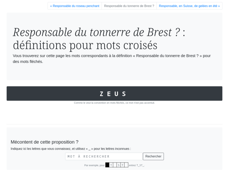 Au-delà de la recherche par lettres, Cruciverbe.fr propose un dictionnaire de plusieurs dizaines de milliers de définitions de mots croisés et mots fléchés. Vous pouvez y accéder directement depuis la barre de recherche en tapant la définition telle qu'elle apparaît dans votre grille. Les définitions sont classées par thèmes et par lettre initiale, ce qui facilite la navigation. Chaque fiche de définition présente les solutions les plus courantes associées à cet intitulé dans les grilles françaises, ainsi que des définitions similaires ou voisines. C'est particulièrement utile quand une définition vous est inconnue ou ambiguë : vous pouvez explorer les sens proches et trouver la solution qui s'intègre dans votre grille.