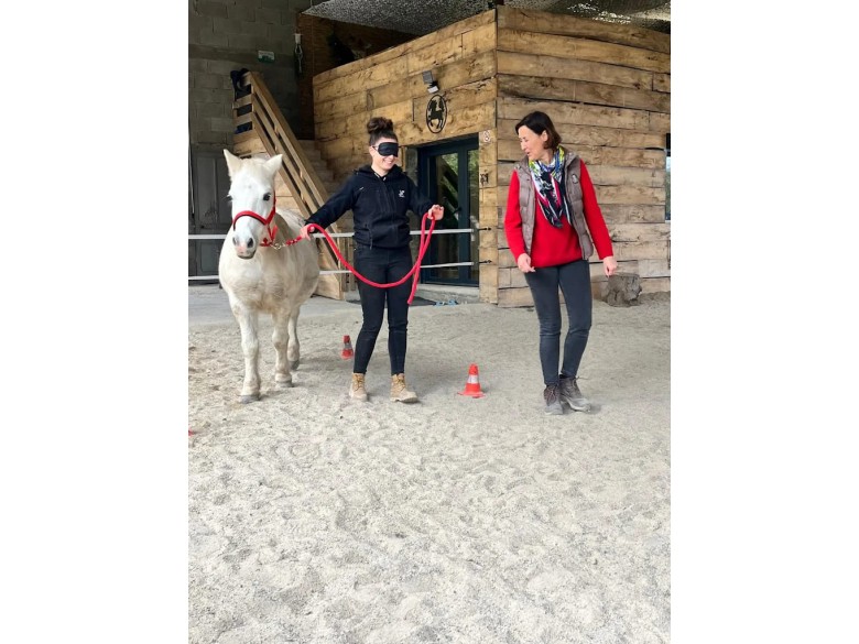 Les stagiaires apprennent à développer leur posture d’accompagnant, leur intelligence émotionnelle ainsi que leur capacité à interpréter les signaux du cheval et à instaurer un cadre sécurisant.