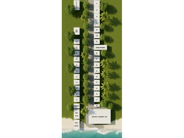 Notre offre de logement se concentre sur des bungalows accueillants, conçus pour offrir une expérience de séjour confortable et immersive. Que vous optiez pour un bungalow ventilé pour une ambiance tropicale ou un bungalow climatisé avec télévision et réfrigérateur pour un confort moderne, chaque unité est un havre de paix.